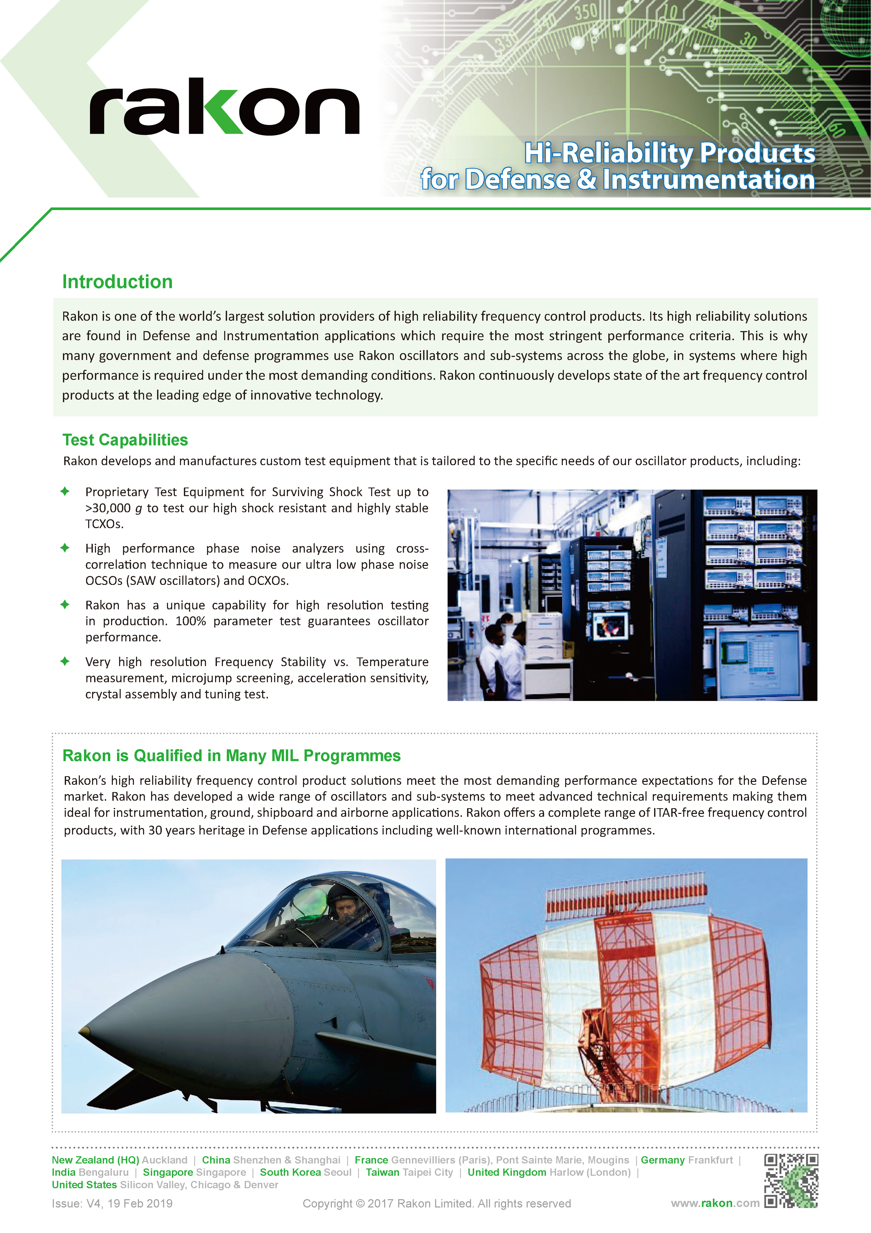 RAKON introduces a detailed defense quartz devices and improved solutions for the system. Consider RAKON's products, which have much experience in defense application.