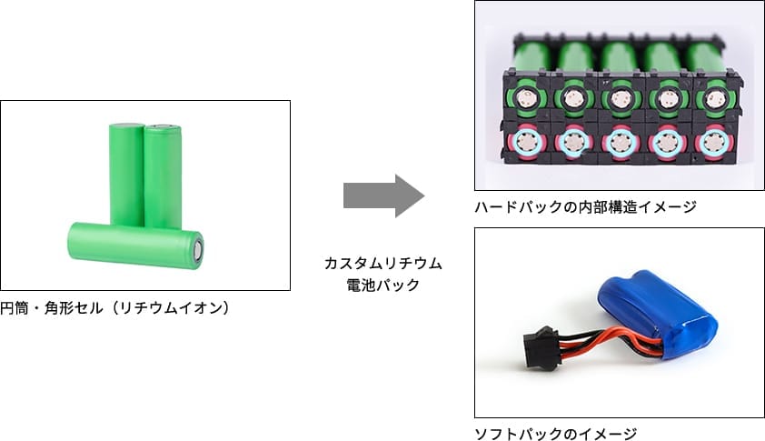 ※円筒セルを利用したカスタムパックの対応可能