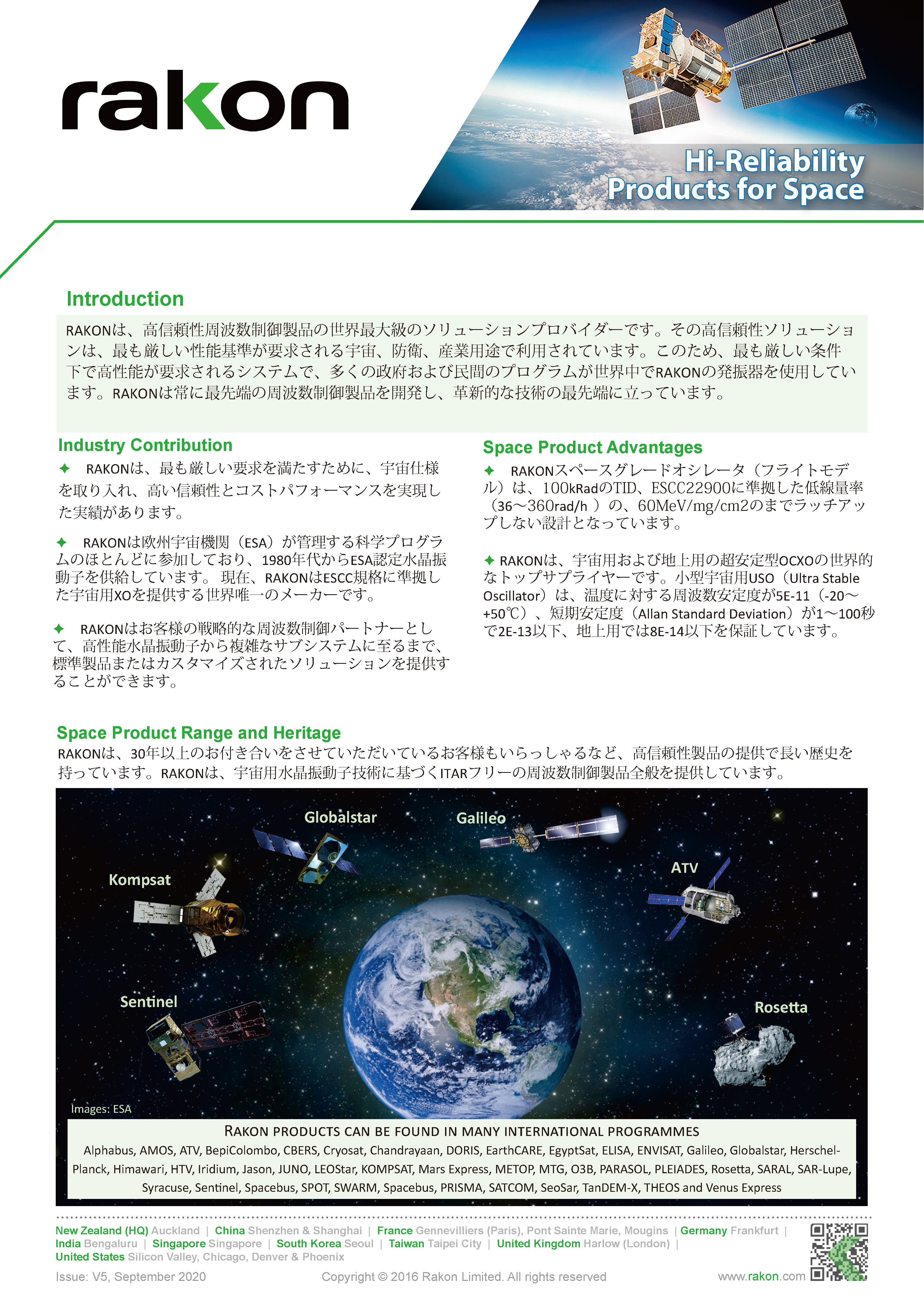 多くの国際衛星事業に採用されている水晶製品を紹介します。放射線・対G規格を満足するRAKON社の水晶デバイスは世界の宇宙事業に貢献をしています。